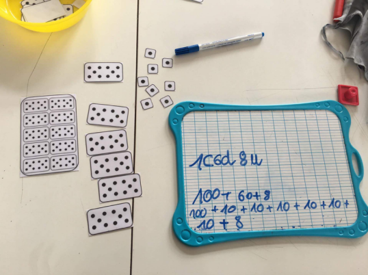 Outils : feuilles à quadrillage, utiliser le tableau de numération pour apprendre à poser une opération et présenter des calculs en colonnes.