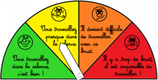 Après nous avons fait le « Vivre ensemble » sur le bruit. Nous avons décidé de fabriquer un feu ROUGE / ORANGE / VERT pour nous taire !"