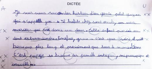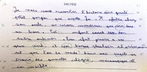 Au test de lecture ROC , cet élève a été capable de lire 120 mots en une minute avec 3 erreurs seulement alors qu’ici , un mot sur deux comporte une erreur d’orthographe.